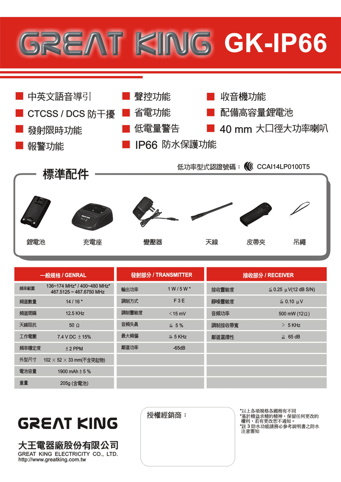 UHF 467.5125~467.6750 MHz FM TRANSCEIVER*