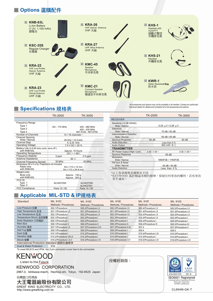 * TK-3000:低功率型式認證號碼:CCAI11LP0260T3